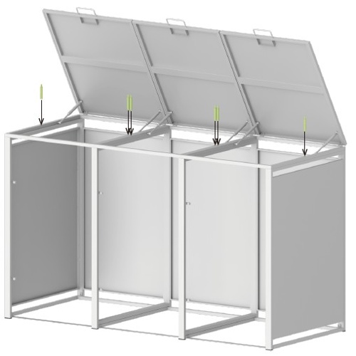 Deze handleiding biedt stapsgewijze instructies voor het monteren van onderdelen en het gebruik van uw Metaal Afvalcontainer Opslag - Drievoudig.