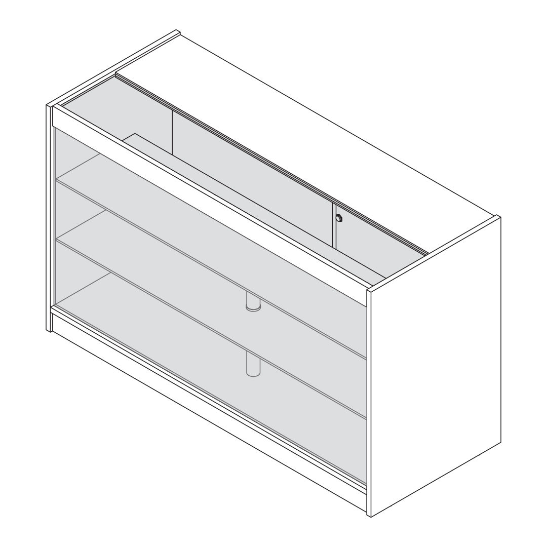 As necessidades de armazenamento e exposição são cuidadosamente equilibradas neste design. O armário possui três prateleiras, todas fechadas por um painel frontal de vidro sólido, permitindo que cada prateleira e seu conteúdo fiquem claramente à vista - perfeito para destacar itens de destaque. Duas portas deslizantes trancáveis na parte traseira, fornecidas com duas chaves, oferecem acesso seguro ao seu stock enquanto mantêm uma aparência elegante do ponto de vista do cliente.