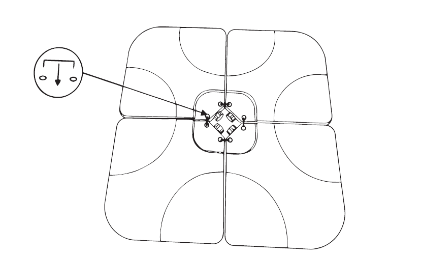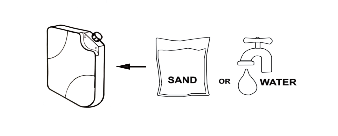 Coloque todos os quatro pesos da base no chão ao redor da localização do suporte do guarda-sol.