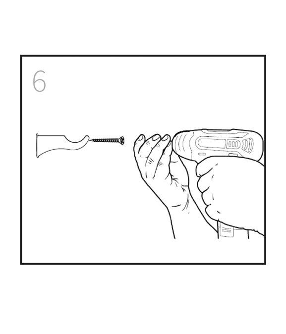 Para fixar cada suporte na parede, aparafuse os pregos nas buchas de parede.