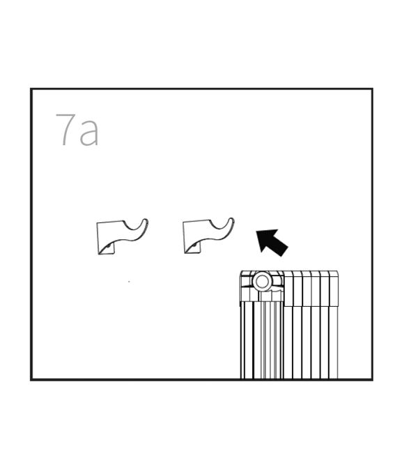 Coloque o radiador nos suportes superiores e fixe o radiador também nos suportes inferiores. Use um nível de bolha para garantir que o radiador foi corretamente fixado à parede.
