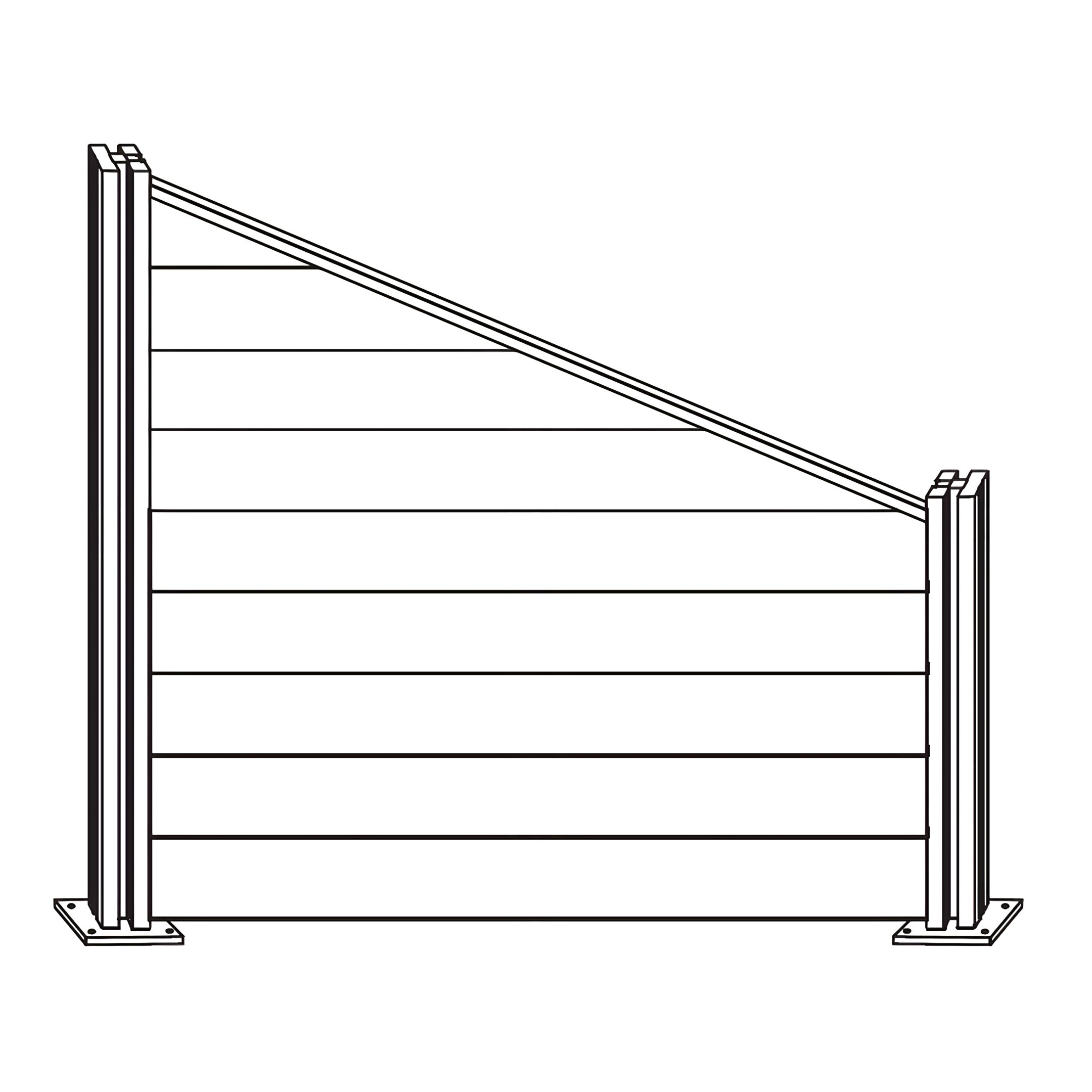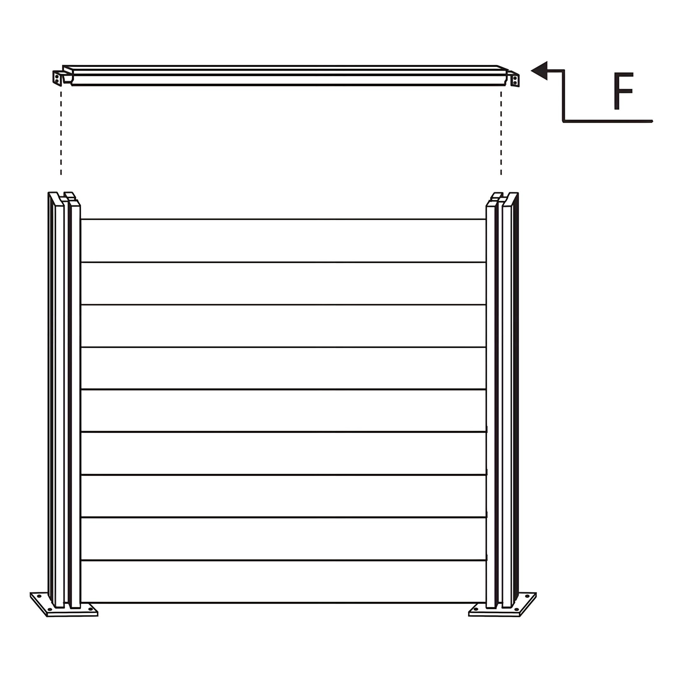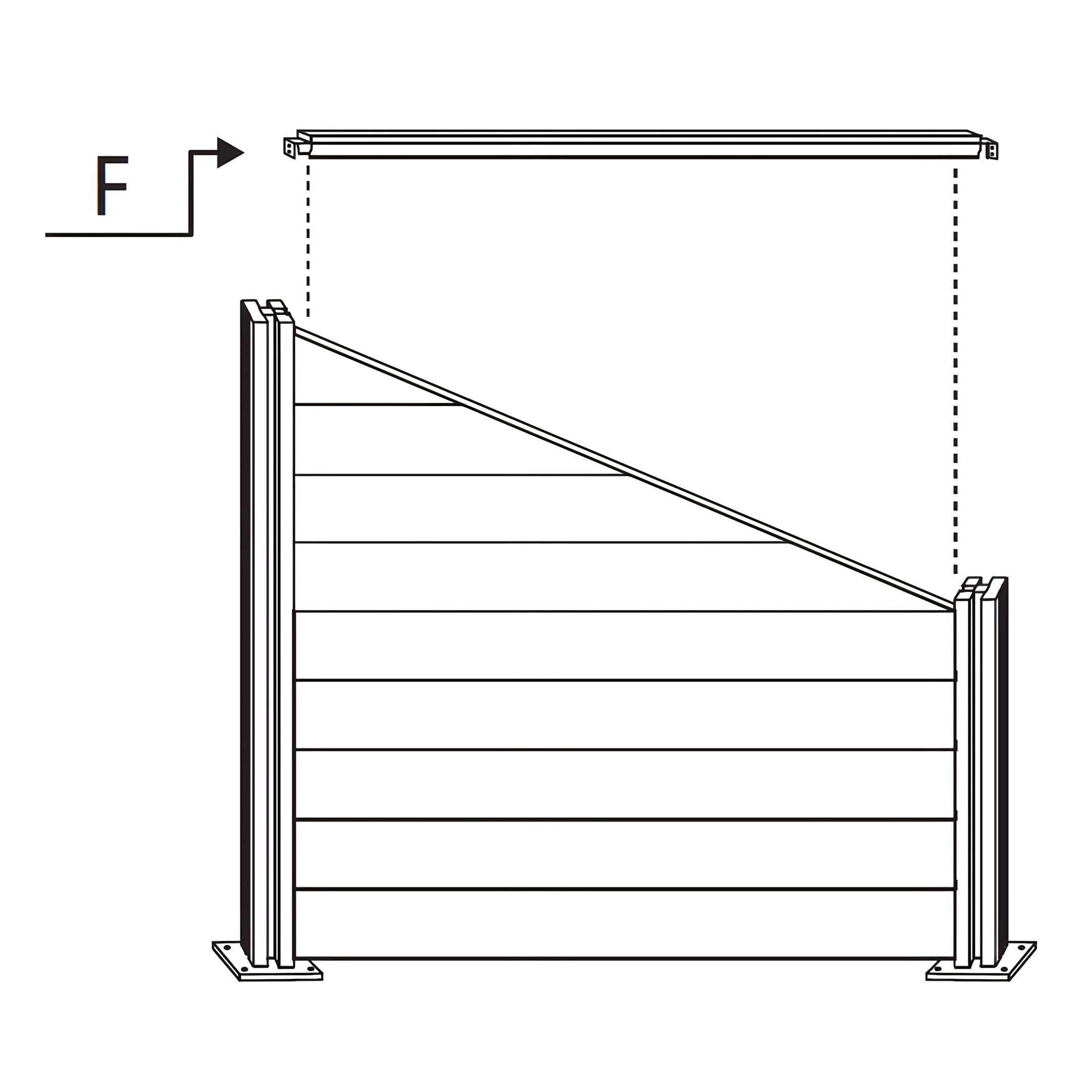 Instale a Parte de Cerca de Canto F - Topo de Ripa de Cerca alinhando-o com o topo das ripas de cerca instaladas. Certifique-se de que encaixa firmemente no topo, completando o design escalonado da cerca.