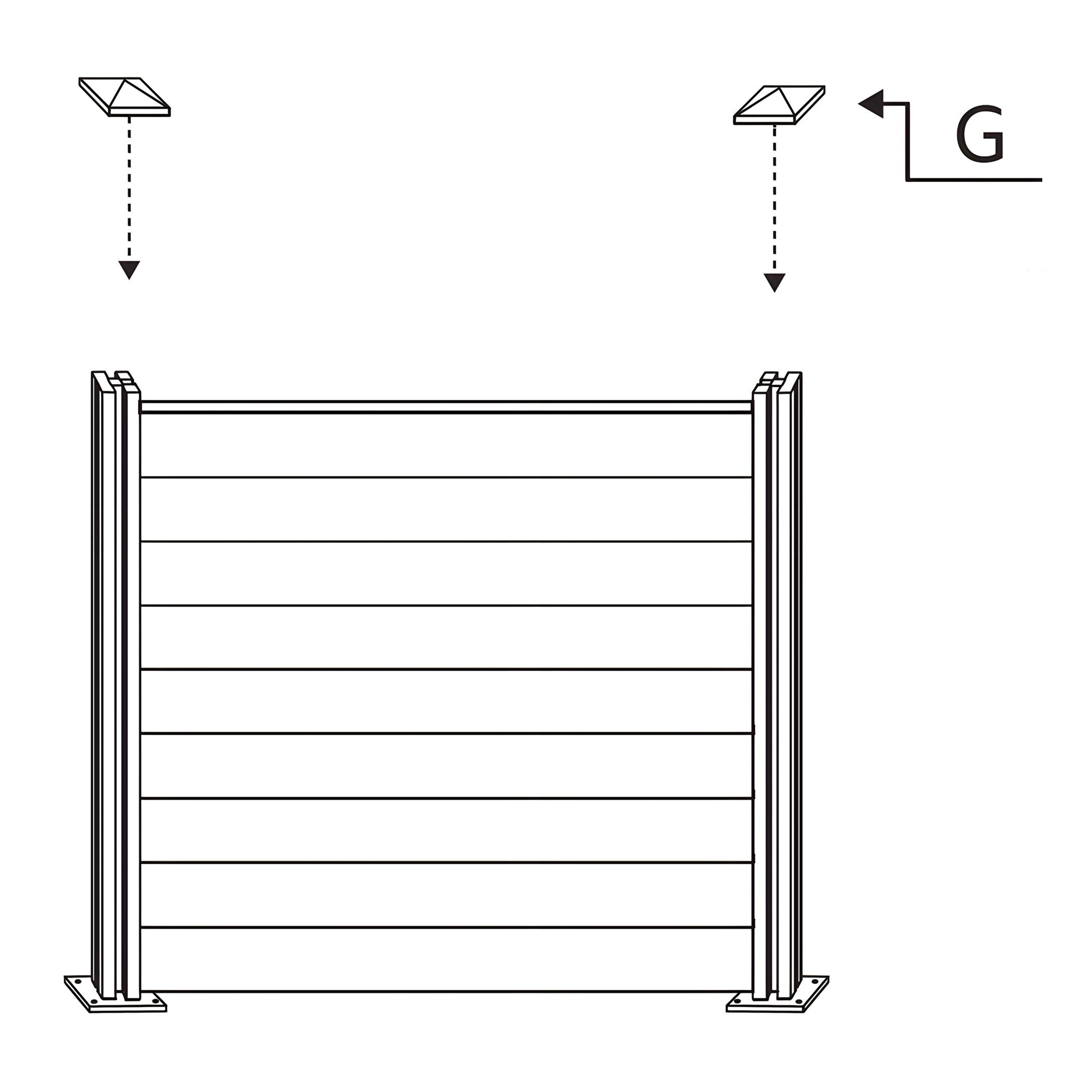 4. Fixação do Topo do Poste de Vedação - Instale a Parte da Vedação G - Topo do Poste de Vedação no topo de cada poste para proteção e estética.