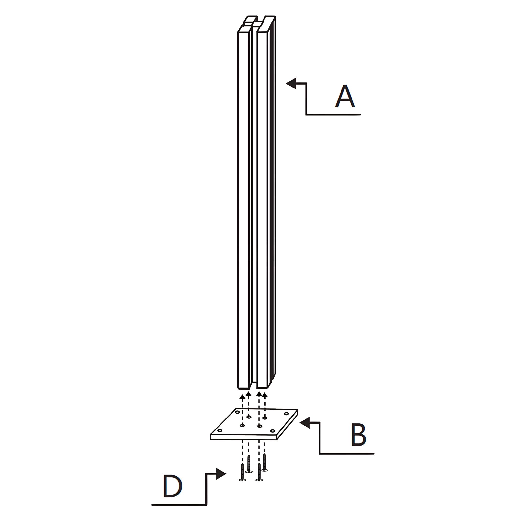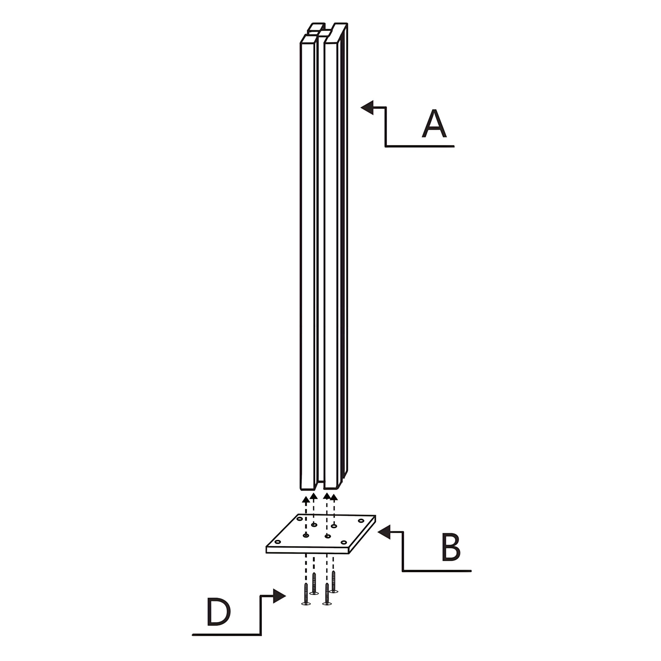 Anexe a Parte de Cerca de Canto A - Postes de Cerca de Alumínio com LED à Parte de Cerca de Canto B - Base do Poste de Cerca usando os Parafusos de Cerca de Canto D - Parafusos M4x45mm. Certifique-se de que o poste está corretamente alinhado com a base e aperte bem os parafusos para manter o poste no lugar.