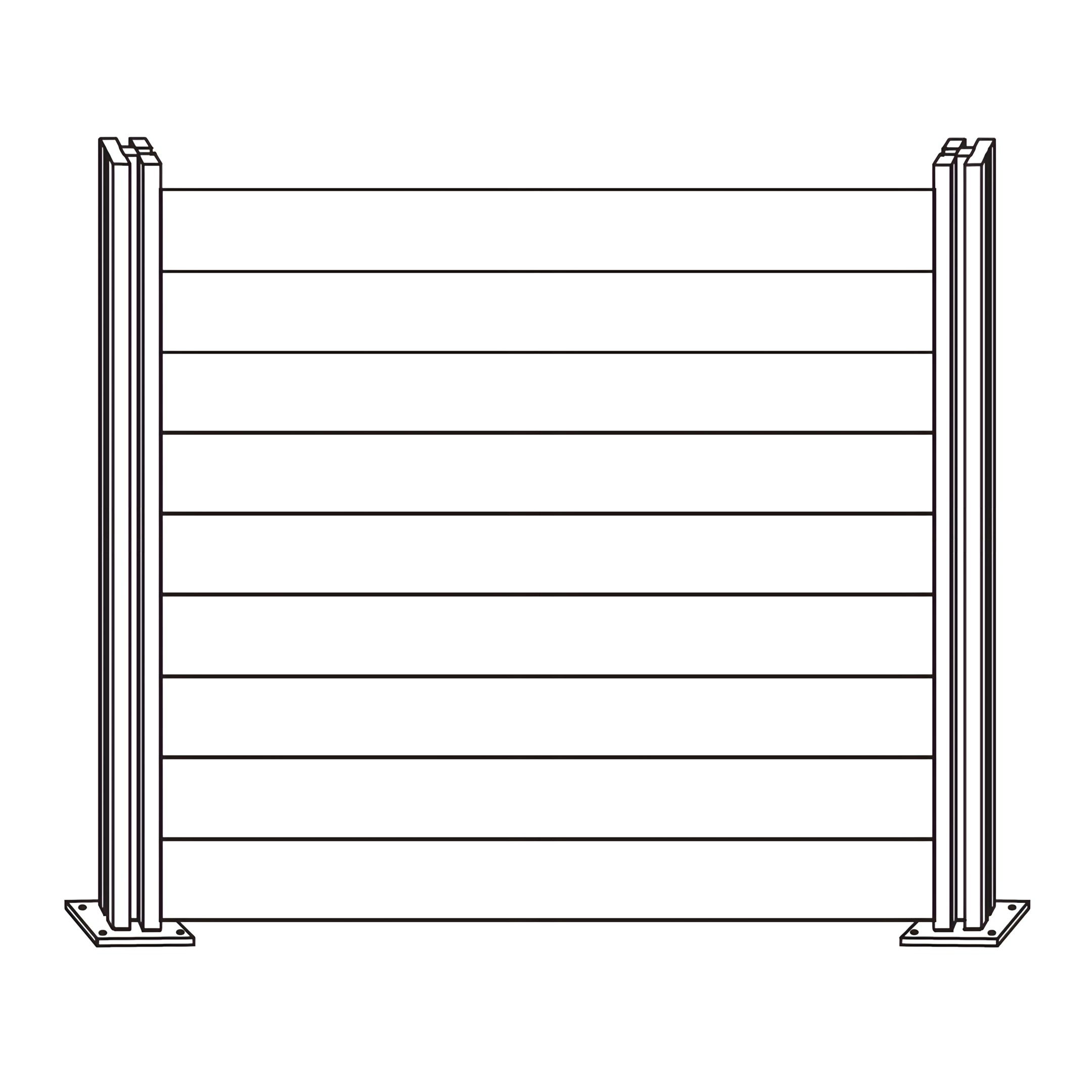 Insira as Parte de Cerca de Canto E - Ripas de Cerca entre as duas Parte de Cerca de Canto A - Postes de Cerca de Alumínio com LED. Certifique-se de que as ripas estão devidamente alinhadas e encaixadas com segurança nas ranhuras dos postes.