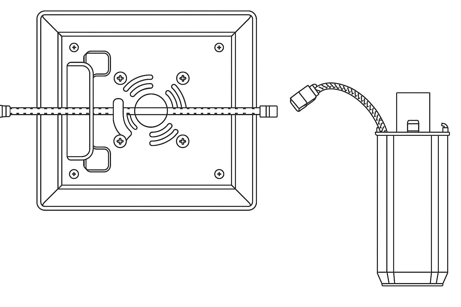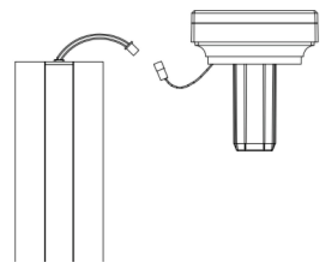 1. Conecte a tampa do poste à bateria com conectores; 2. Alinhe a caixa da bateria com o orifício na tampa do poste e rode-a no sentido anti-horário para instalar. Note que todos os fios devem ser inseridos na caixa da bateria para evitar danificar os fios durante a rotação; 3. Conecte a tampa do poste à tira de LED com conectores; 4. Insira a tampa do poste no poste.