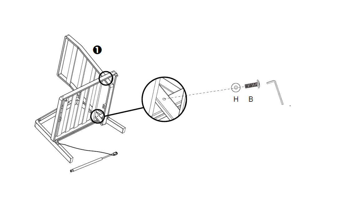 Sätt in Bult 8x35mm (Del B) genom Stor bricka (Del H) i de inriktade hålen.
