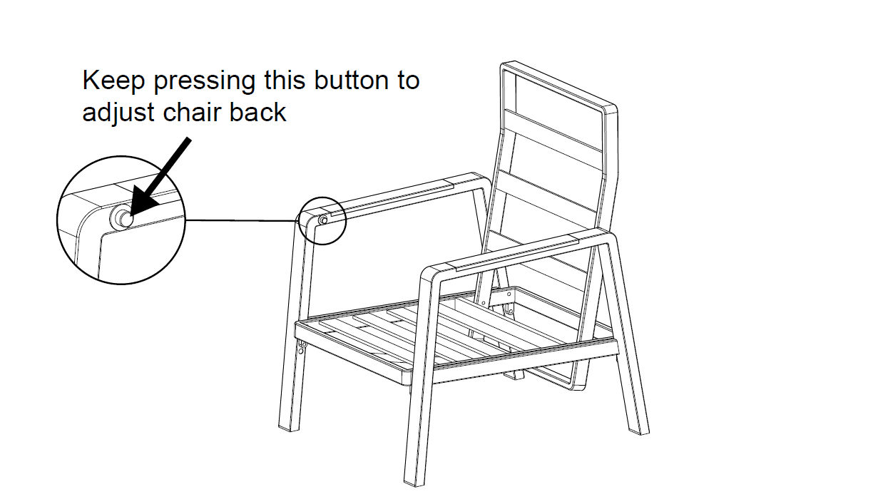 Tryck på knappen på armstödet för att justera ryggstödet till önskad vinkel.