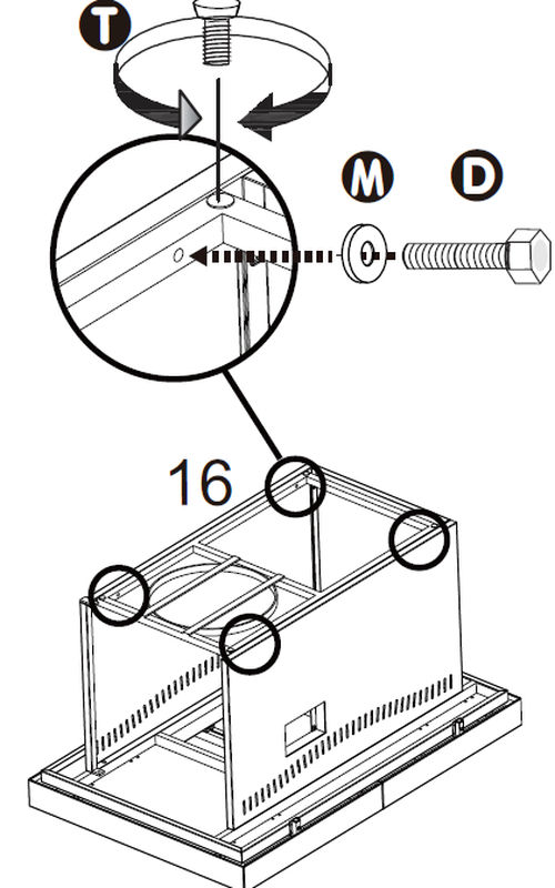 Sätt in Bult (Del D) genom Bricka (Del M) och sedan genom hålen på Bottenfäste in i hålen på basen.