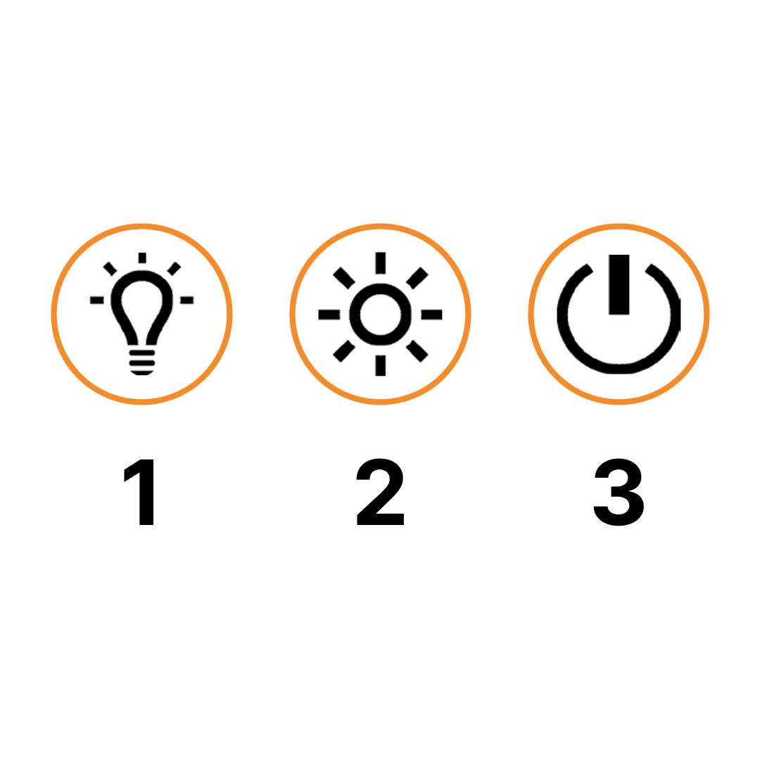 1. Byt ljusinställningar: Använd kontrollen för att växla mellan de 3 olika ljusinställningarna - Vit, Varm och Varm Gul. 2. Justera ljusstyrka: Använd kontrollen för att justera ljusstyrkan på LED-lamporna. 3. Ström på/av: Använd kontrollen för att slå på och av LED-lamporna.