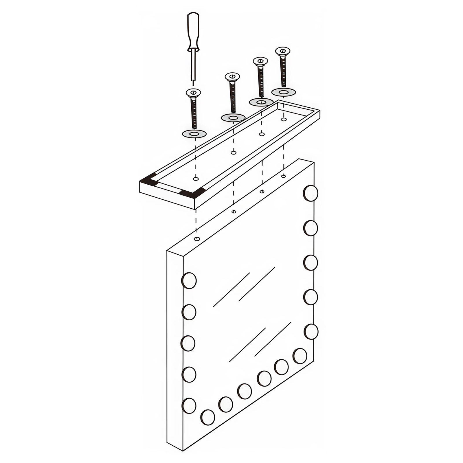 1. För att fästa spegeln på en vägg, skruva in de två skruvarna (E) genom väggen med hjälp av de medföljande väggankarna (F). Se till att skruvarna sitter ordentligt och att avståndet mellan skruvarna motsvarar spegelns längd. 2. Nu kan du enkelt hänga spegeln på väggen!